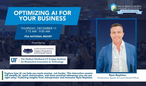 We’re excited to feature Ryan Boylston as our speaker. Ryan is a lifelong entrepreneur who’s built companies, served his community, and now helps reimagine the future of work, technology, and sustainability. He founded and scaled 2TON, a creative agency that shaped the brands of South Florida and beyond, before serving two terms as a City Commissioner in Delray Beach. Today, he leads Urban Abundance, transforming backyards into edible ecosystems, while also teaching, speaking, and challenging business leaders to think differently about AI, innovation, and leadership.