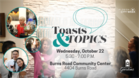 Join us for a business-after-hours social at Toasts and Topics ?? with Mayor Marcie Tinsley on Wednesday, October 22 from 5:30 to 7:00 p.m. at the newly renovated Burns Road Community Center (4404 Burns Road) in the Palm Room.